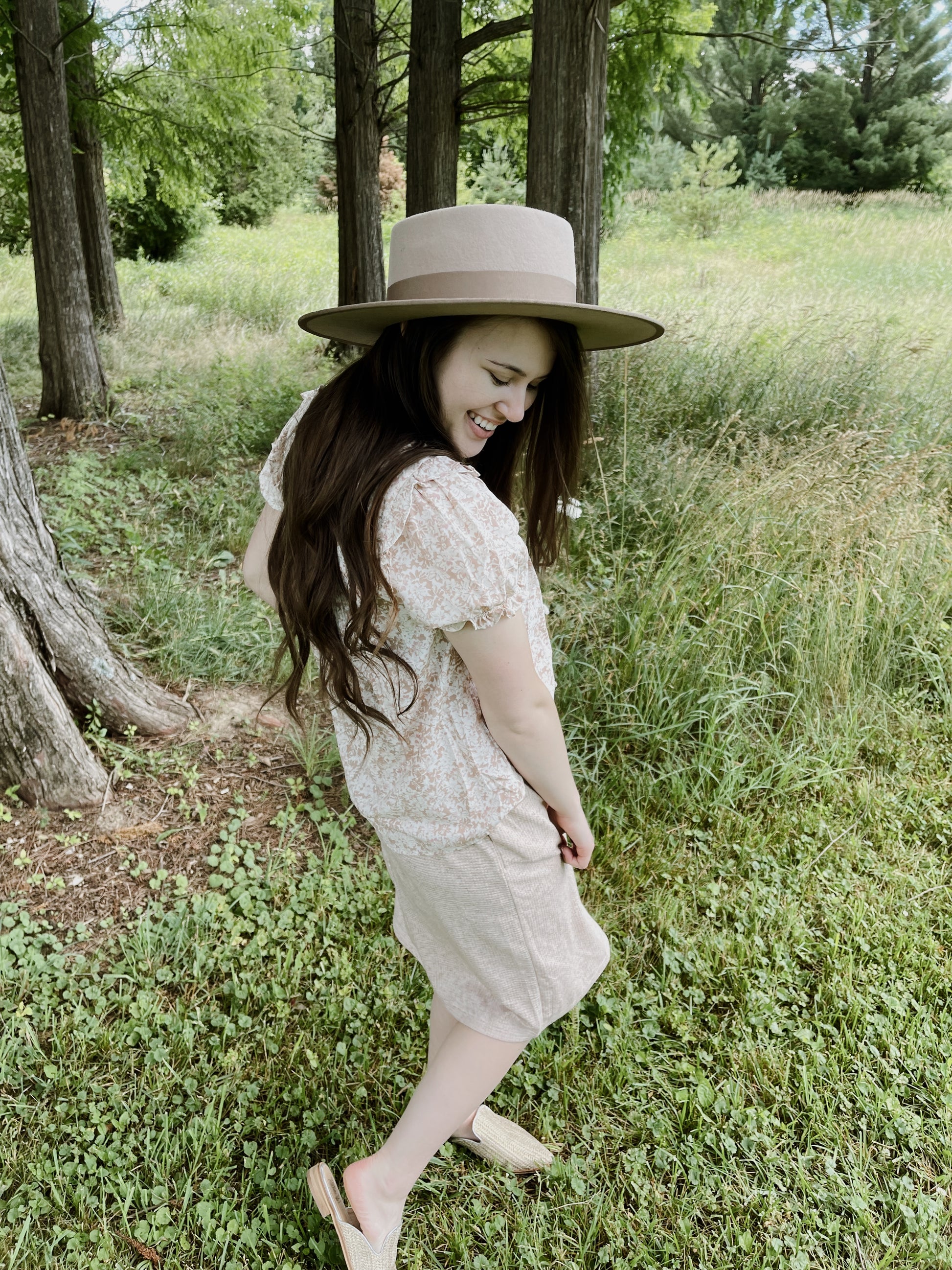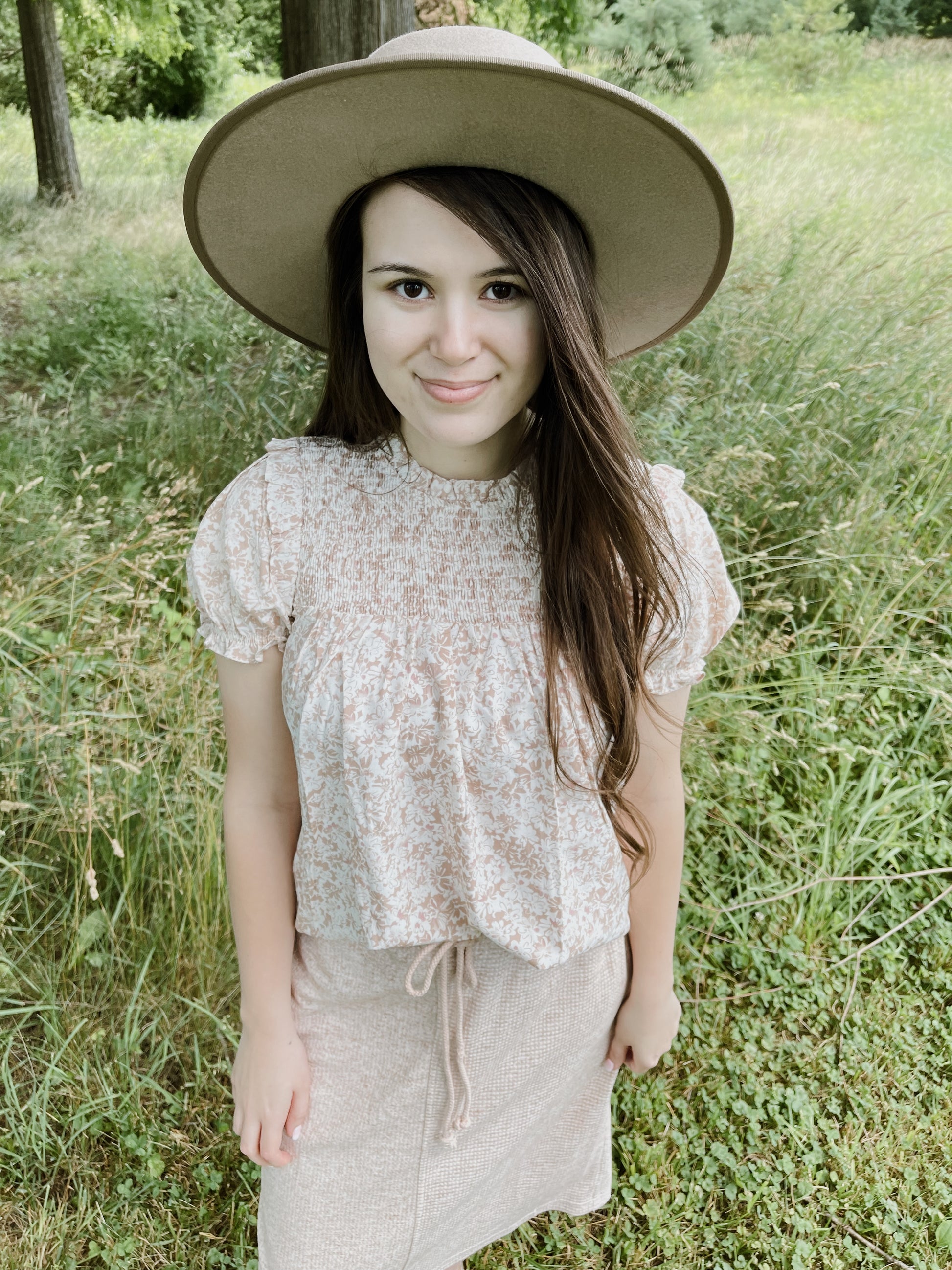 - Light pink floral top