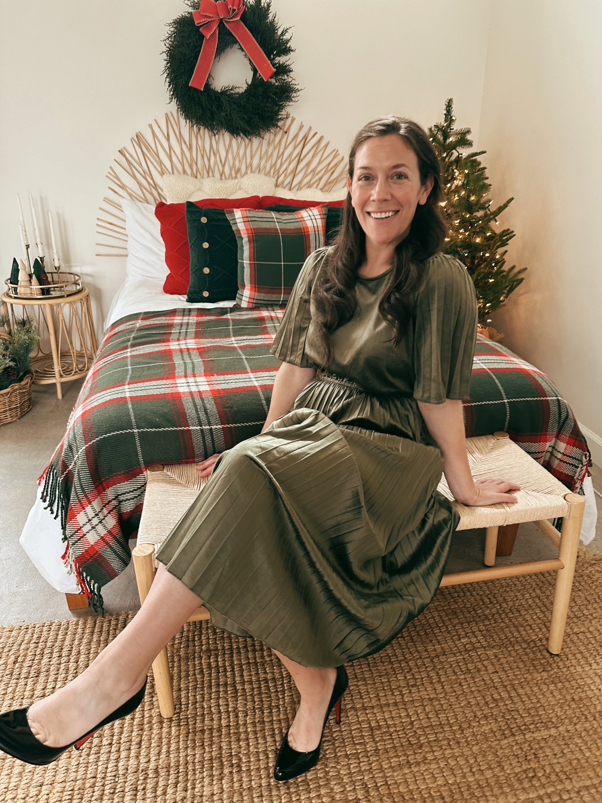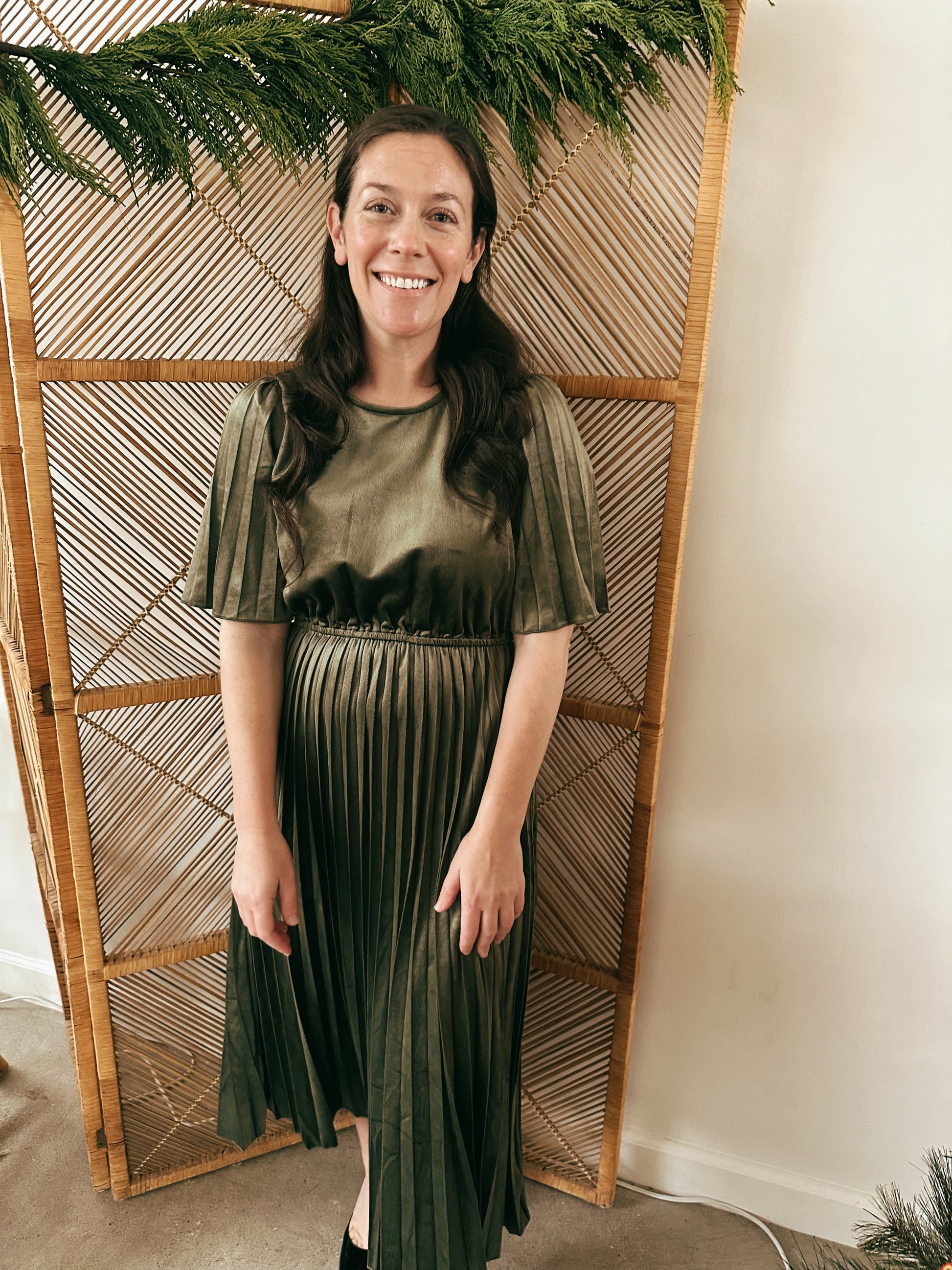 - Olive green velvet dress