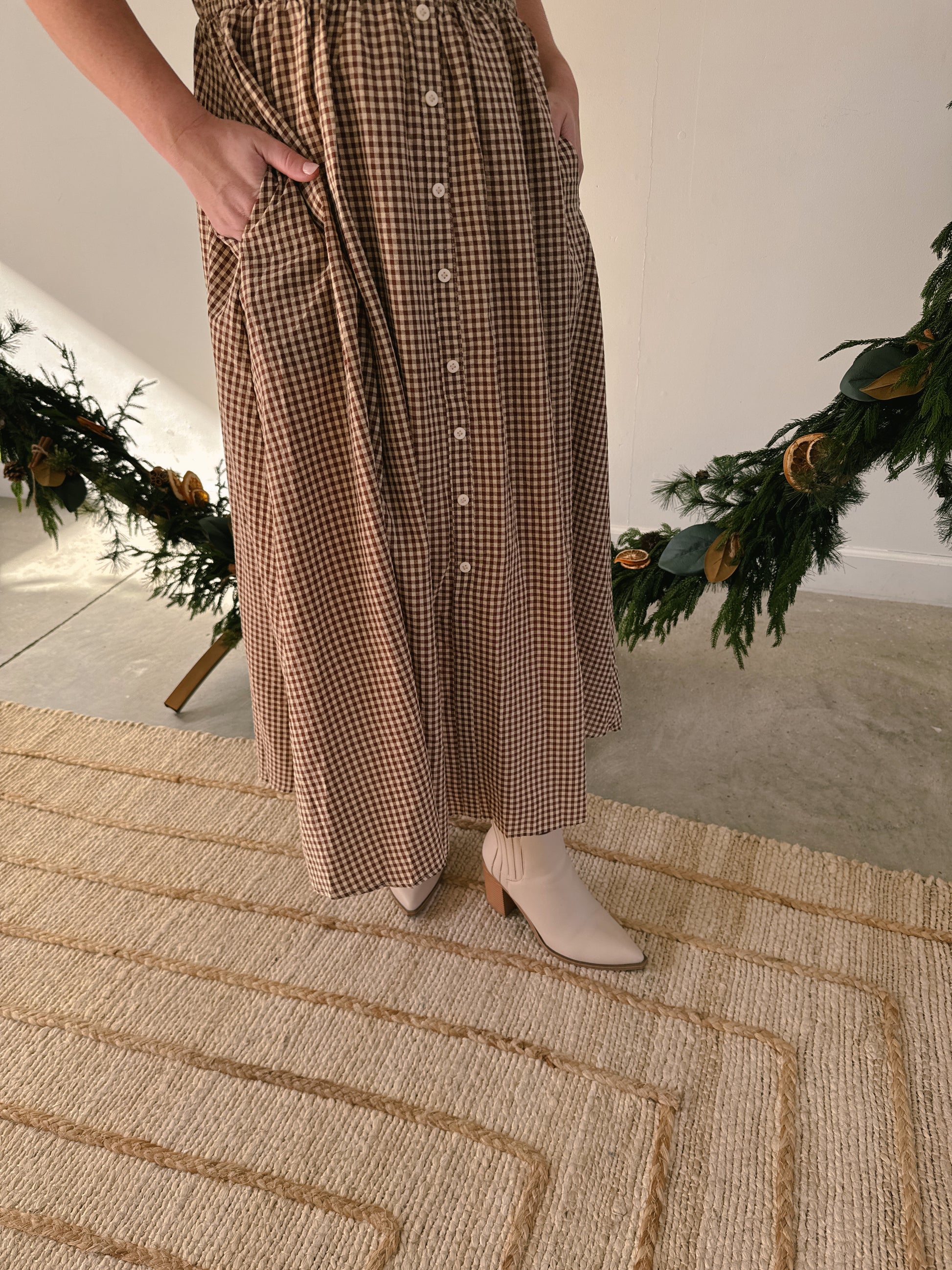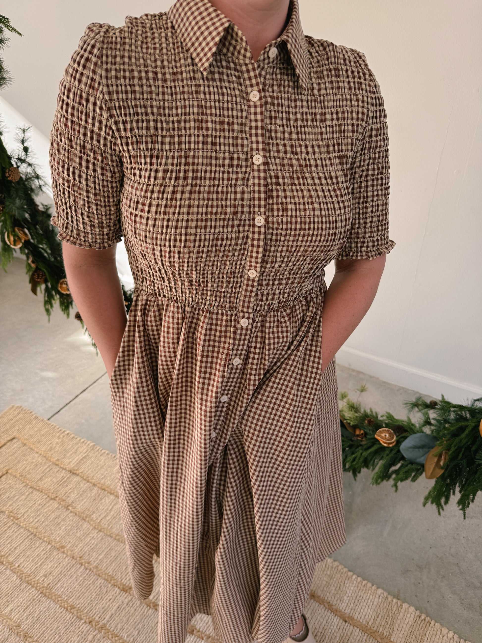 - Gingham collars dress in Brown/Navy and Cream/Tan