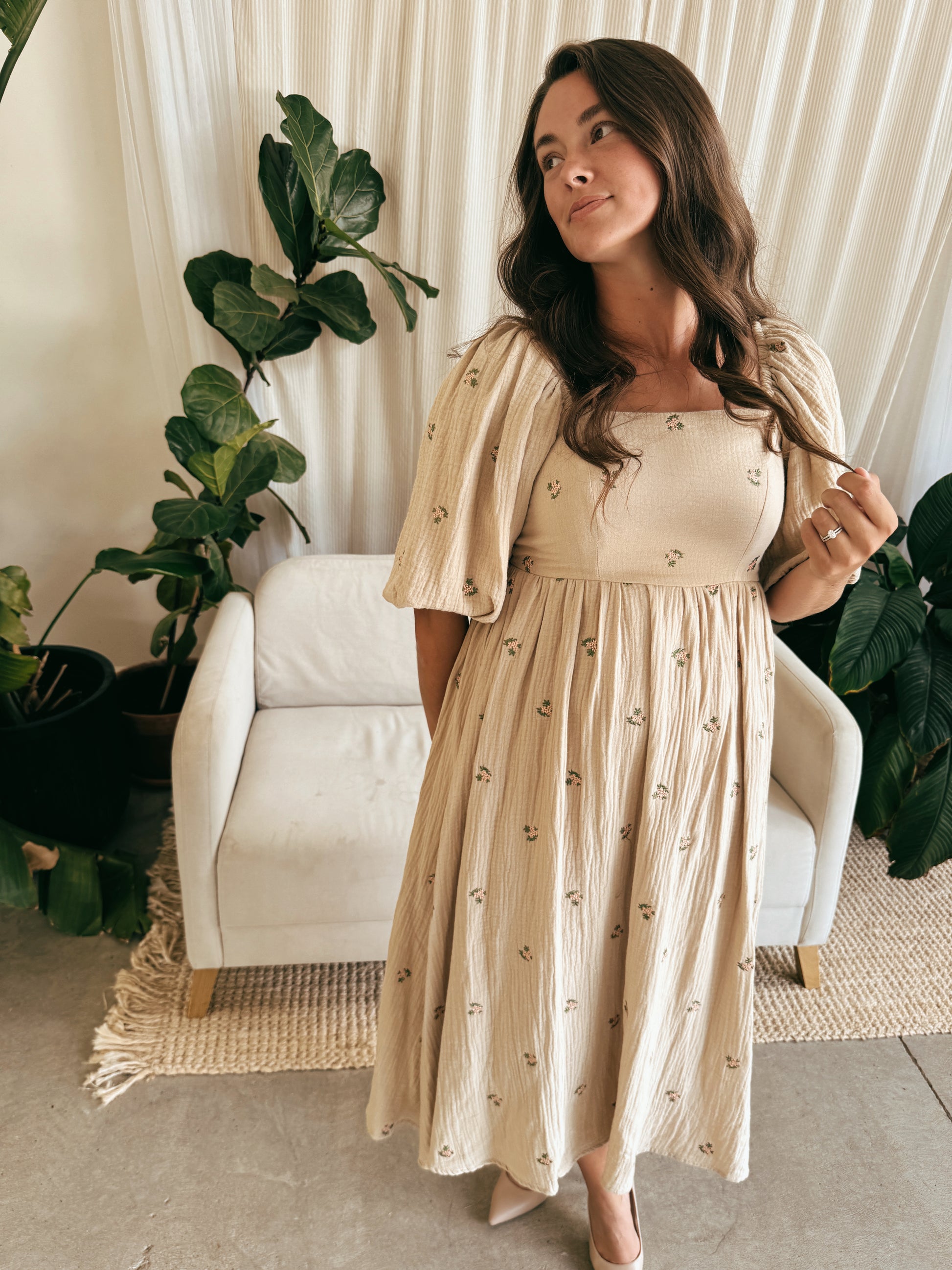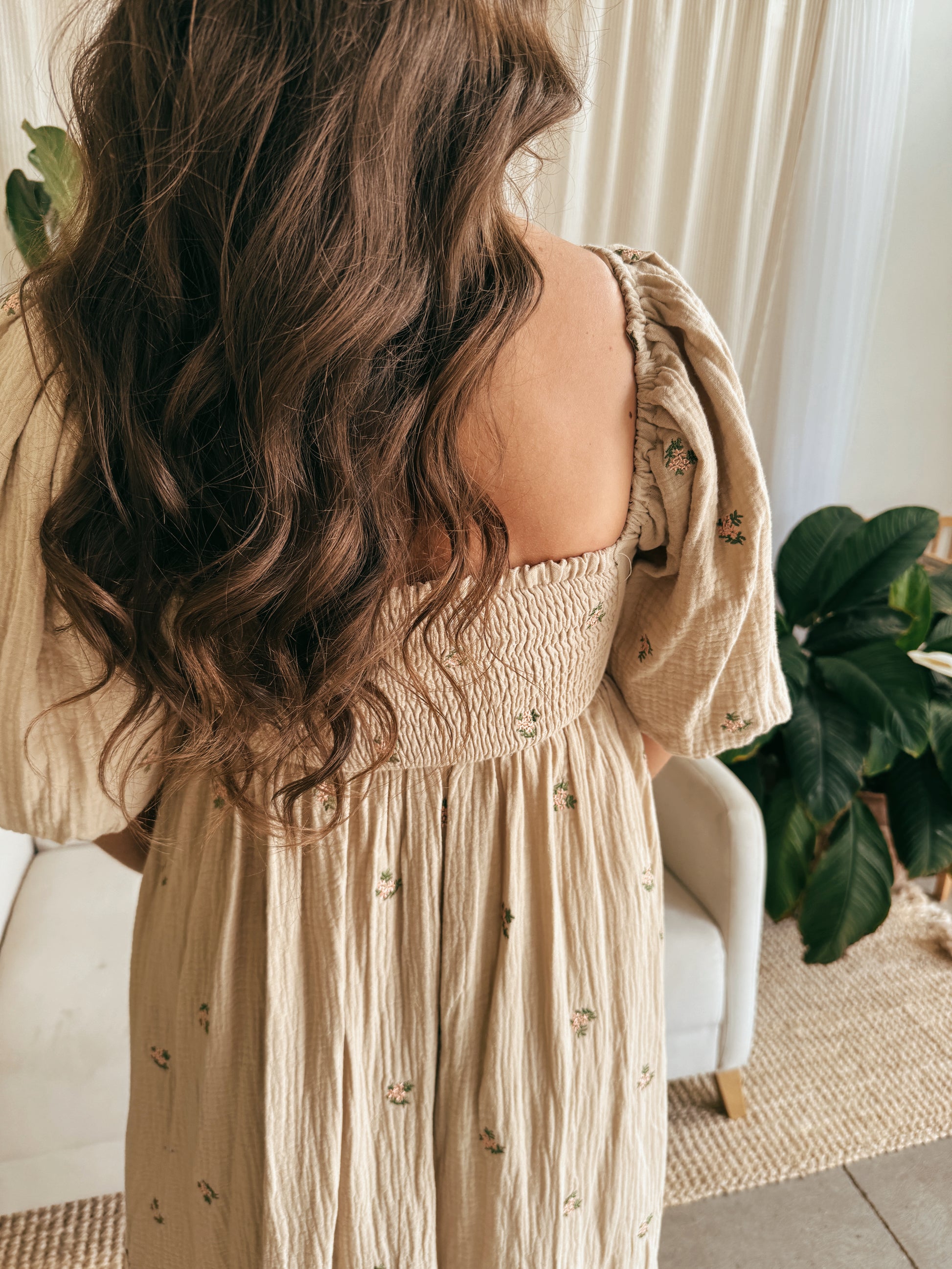 - Gauze floral print dress